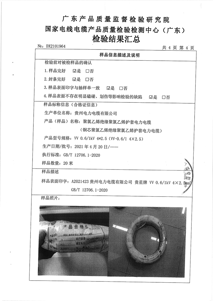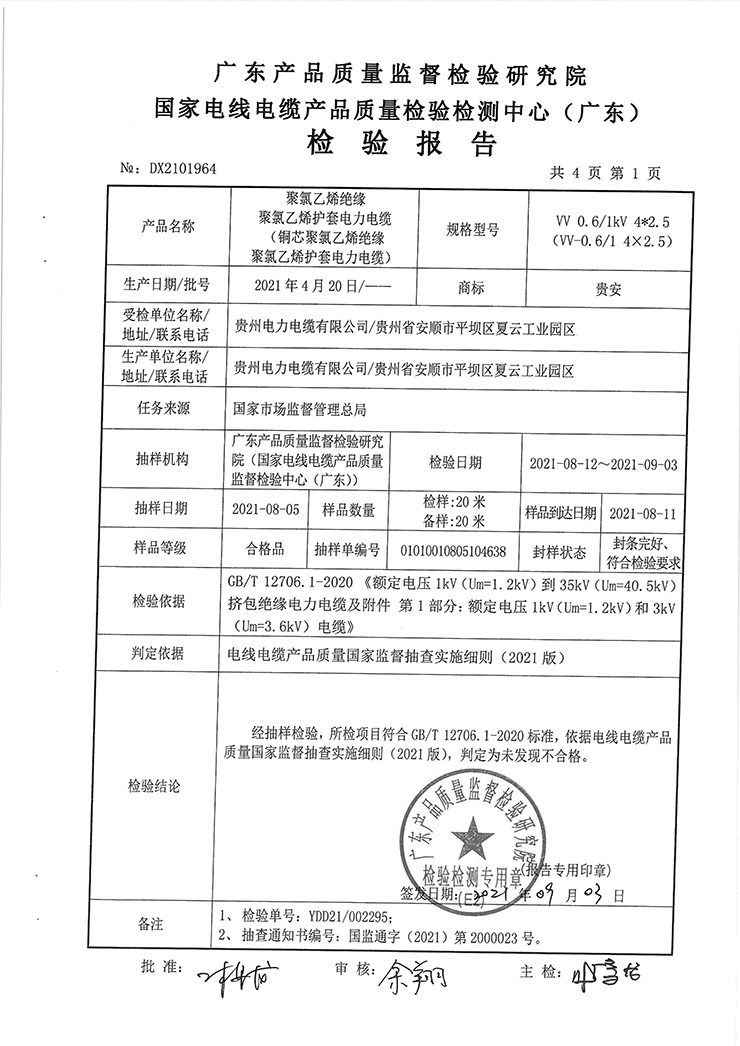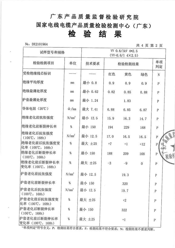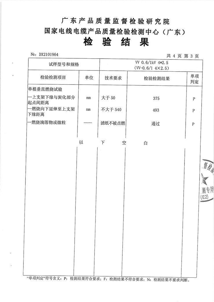 聚氯乙烯絕緣聚氯乙烯護套電力電纜(銅芯聚氯乙烯絕緣聚氯乙烯護套電力電纜)國抽檢驗報告