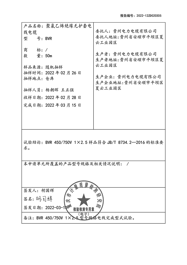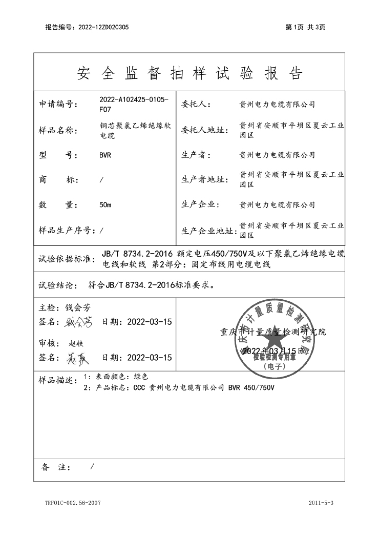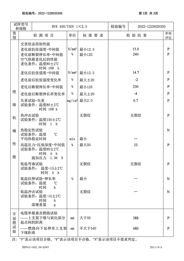 聚氯乙烯絕緣無護套電線電纜 國家強制性產(chǎn)品認證(CCC)試驗報告